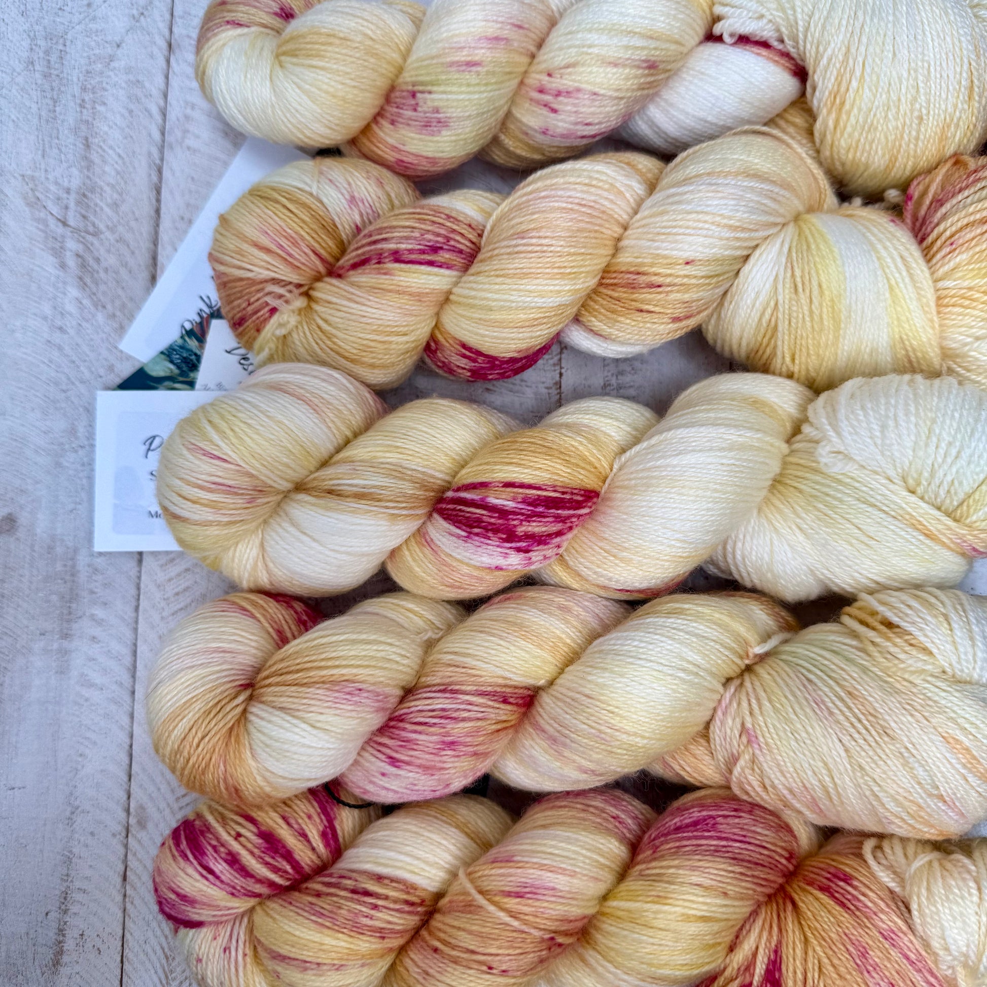 Stunning hand dyed variegated 4 ply yarn with complimentary tonals from the fabulous Robyn at Chardyglen Designs. Perfect for socks but also anything else you want to make with a 4 ply yarn.